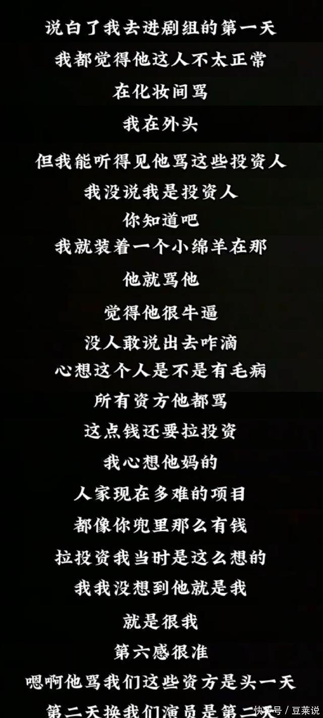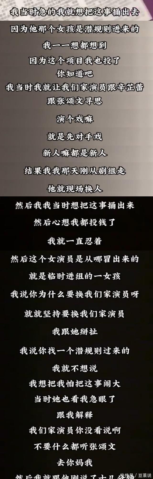 此外,投资人还透露了一个更加惊人的消息: 张颂文潜规则女演员,并安排其进组。